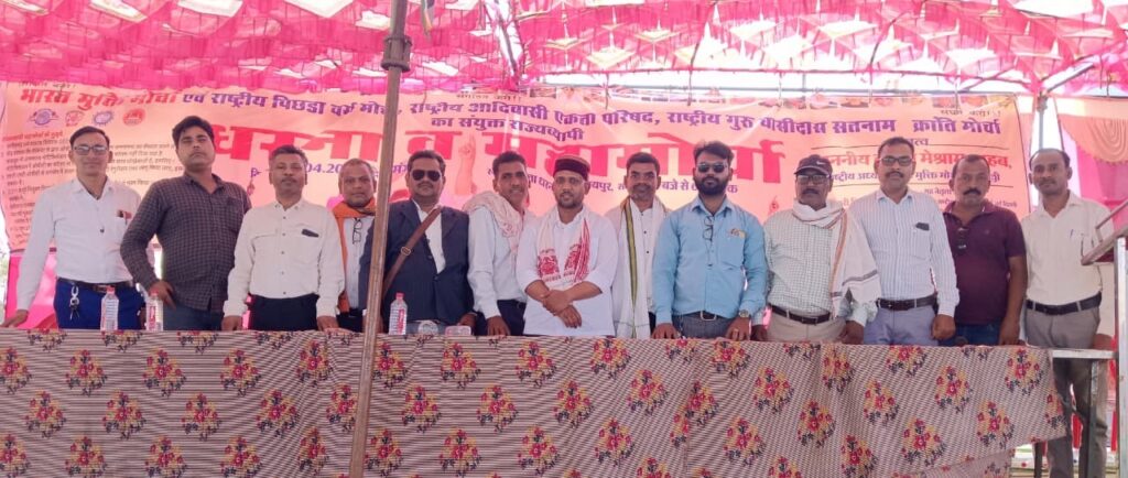 छत्तीसगढ़ ओबीसी संयोजन समिति ने भारत मुक्ति संयुक्त मोर्चा के आंदोलन को पूर्ण समर्थन देते हुए प्रदेश भर से लगभग 500 पदाधिकारियों एवं समर्थकों को रायपुर के तूता माना धरना स्थल पर जुटाया।